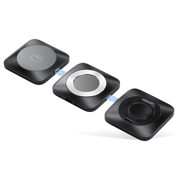 מטען אלחוטי 3 ב-1 בעיצוב מודולרי חכם – פתרון מושלם לטעינת כל המכשירים במקביל.